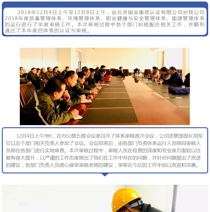 新聞?wù)?鑫匯公司順利通過2018年度四體系認(rèn)證審核