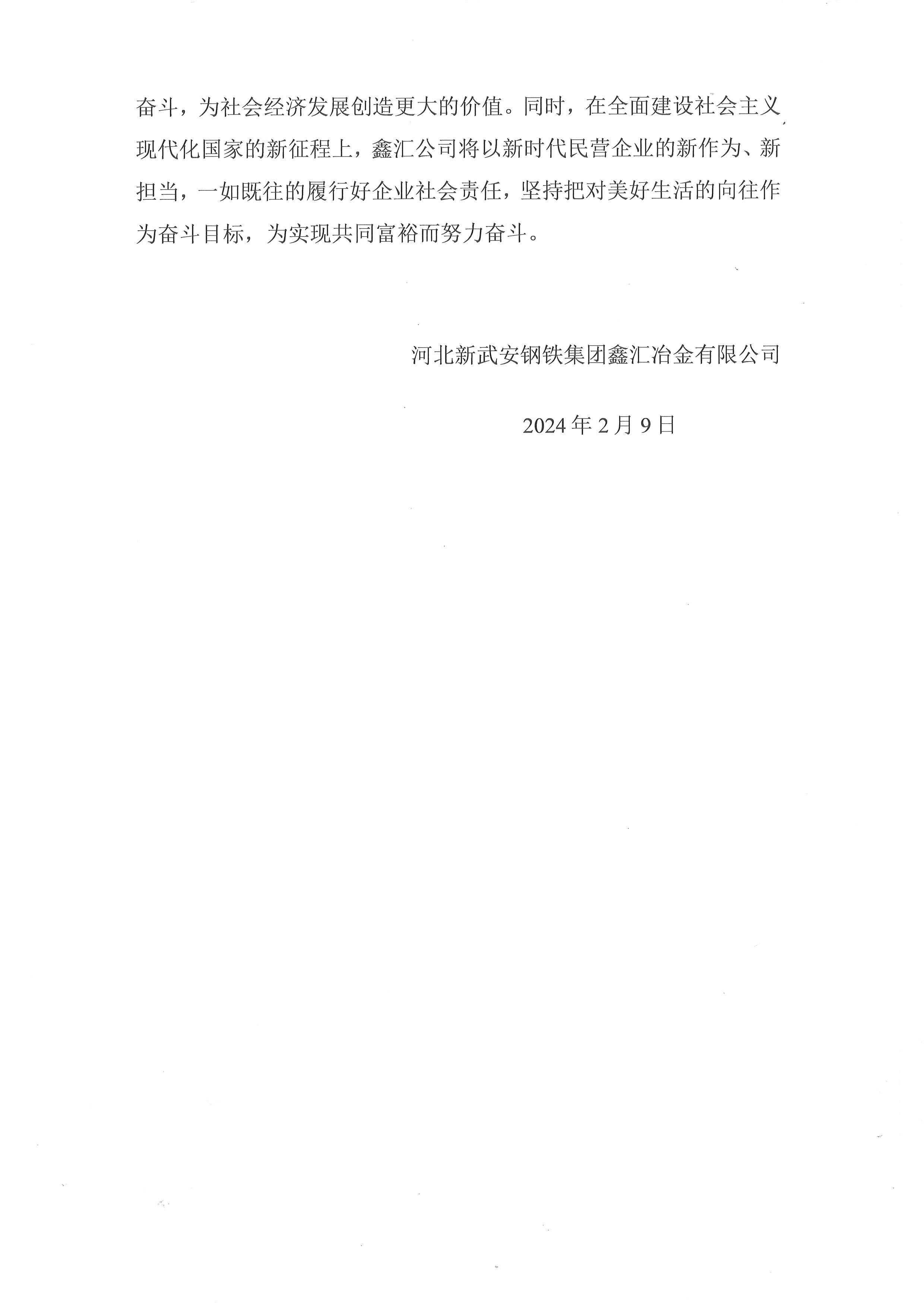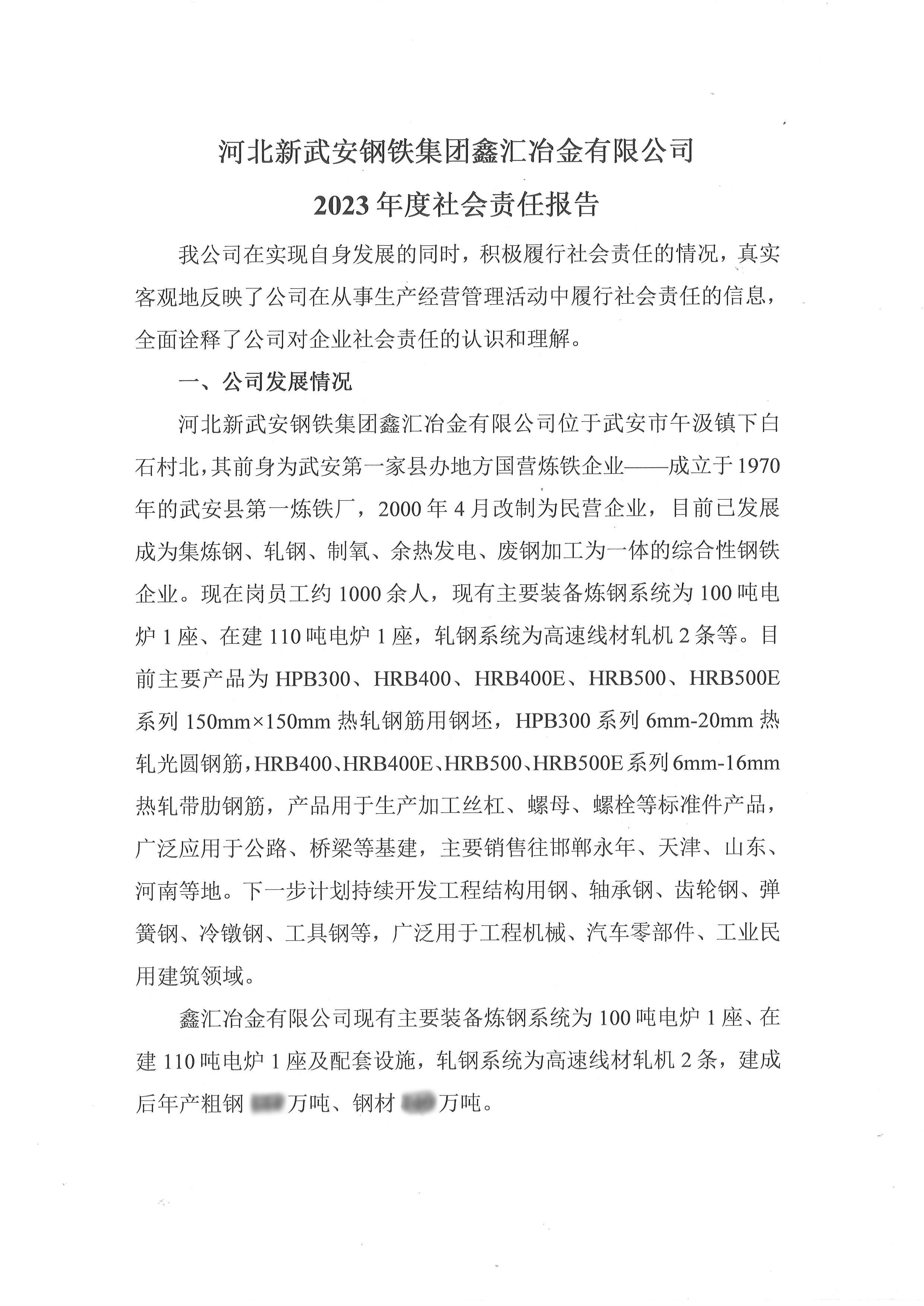 河北新武安鋼鐵集團(tuán)鑫匯冶金有限公司2023年度社會責(zé)任報告